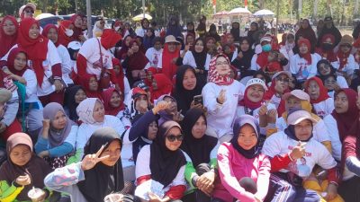 Bacabup Pesawaran Nanda Indira memberikan apresiasi kepada para peserta yang sangat antusias mengikuti kegiatan jalan sehat dan senam CAKEP Pesawaran.