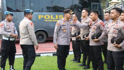 Wakapolres Brebes Kompol Purbo Adjar Waskito yang didampingi para Kabag dan Kasi Propam berkeliling ke setiap pasukan dari masing – masing bagian dan Satuan Fungsi (Satfung) untuk mengecek kesiapan personel yang meliputi sikap tampang, seragam dinas (gampol) dan surat identitas personel.
