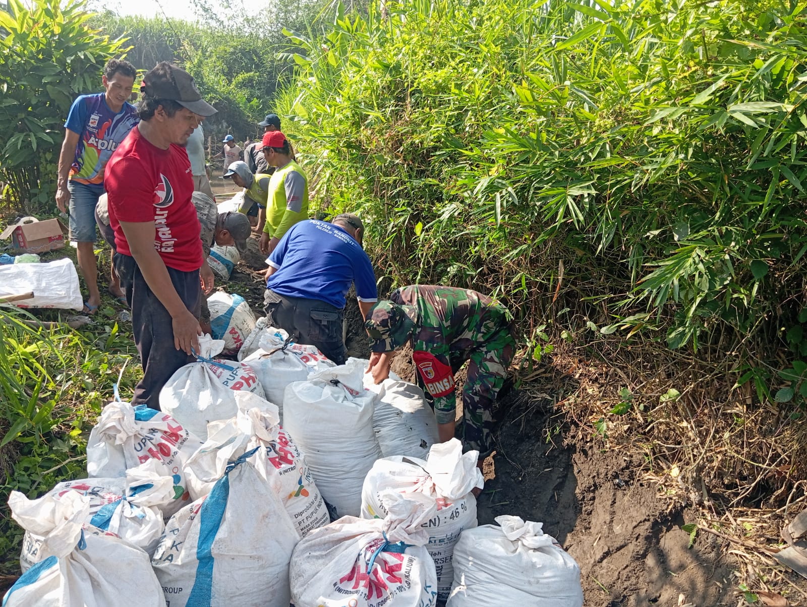 M. Huda (Ketua Poktan/Ketua RW 08 Kel. Bawang, Kec. Pesantren, Kota Kediri menyampaikan ucapan terimakasih kepada Sertu Mulyono selaku Babinsa Ramil 02/Pesantren Kel. Bawang dan seluruh warga masyarakat, saat libur masih menyempatkan waktu melaksanakan gotong royong resik-resik dan perbaikan tanggul sungai Pulerejo, semoga permasalahan air mengenang ke area persawahan dan ke halaman warga bisa teratasi selain hisa menciptakan lingkungan yang besih dan irigasi lancar.