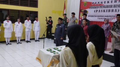 Untuk itu atas nama pemerintah saya menyampaikan ucapan selamat kepada adik-adik yang baru saja dikukuhkan sebagai Pasukan Pengibar Bendera Peringatan HUT ke-79 Kemerdekaan RI Tingkat Kecamatan Nagrak Tahun 2024, semoga dalam menjalankan tugas dan tanggung jawab yang diemban dapat berjalan dengan baik, sukses dan lancar serta dijauhkan dari segala hambatan,”