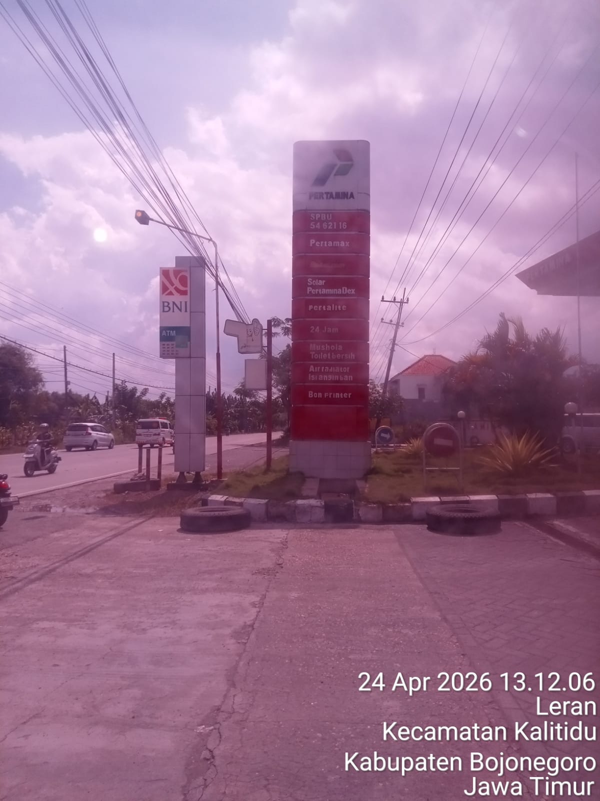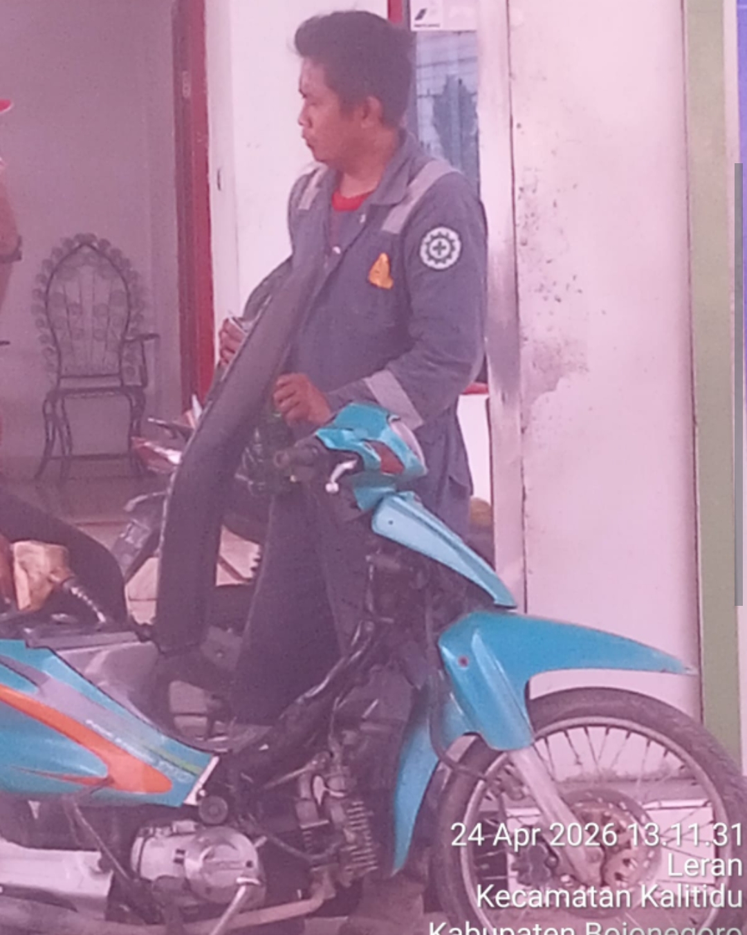 Kali ini Jumat 24 April 2026 tepat padal pukul 13.11 WIB SPBU 54.621.16 yang beralamat di jalan Leran Kecamatan Kalitidu Kabupaten Bojonegoro telah melanggar prosedur pada point ketiga, dimana kedapatan seorang laki-laki berbaju Navy mengendarai Motor Shogun Hijau dengan Nopol xxxx mengisi Pertalite dengan membawa botol air mineral ukuran 1,5 liter.