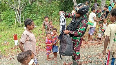 Disisi lain Mama Yuliana Wiyala (48) mengucapakan terima kasihnya kepada personil Satgas Yonif 310/KK karena dirinya mendapat pakaian yang bagus secara gratis. “Mama baru pulang dari kebun, lalu bertemu dengan abang-abang TNI di jalan, mereka beri mama pakaian yang bagus sekali. Mama ucapkan banyak-banyak terima kasih,” tutur Yuliana.*