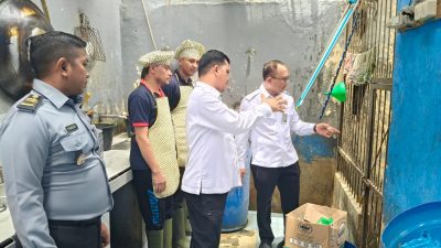 Yan Rusmanto kemudian langsung meninjau sejumlah fasilitas penting. Beliau mengawali dengan inspeksi di area dapur, mengawasi proses pengolahan makanan untuk memastikan kualitas bahan baku, kebersihan, dan standar gizi terpenuhi, menegaskan bahwa hak makanan yang layak adalah hak dasar Warga Binaan.