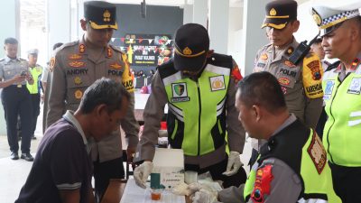 Selain itu, para pengemudi juga menjalani pemeriksaan kesehatan, termasuk cek tensi dan tes urine, guna mendeteksi dini potensi penggunaan minuman keras ( miras ) atau narkoba.