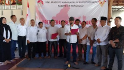 Ponorogo ~ Koordinator Koalisi Rakyat Bersatu (KAReB) Jawa Timur menunjukkan perhatian besar terhadap Pilkada serentak yang akan berlangsung pada November tahun ini. Fokus mereka khususnya tertuju pada calon kepala daerah yang diusung oleh PDI Perjuangan. Dukungan atau pengawasan KAReB terhadap calon dari PDI Perjuangan bisa mencakup berbagai aspek, seperti strategi kampanye, penyampaian visi-misi, dan potensi dukungan publik.