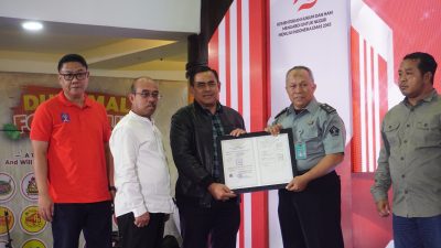 Salah satu momen penting dalam acara ini adalah penyerahan sertifikat Pendaftaran Merek Kain Sasirangan dengan merek “Kaynakarin Sasirangan” kepada Lapas Narkotika Karang Intan. Sertifikat tersebut diserahkan langsung oleh Kepala Kantor Wilayah Kemenkumham Kalimantan Selatan, Taufiqurrakhman, dan diterima oleh Kasi Giatja, Kemal Idris Siregar, yang mewakili Kalapas Narkotika Karang Intan.