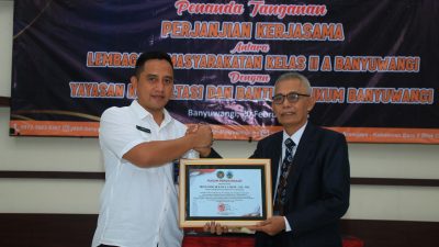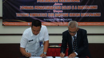 BANYUWANGI ~ Suluhnusantara.News ~ Lembaga Pemasyarakatan (Lapas) Kelas IIA Banyuwangi kembali memperpanjang kerjasama dengan Yayasan Konsultasi dan Bantuan Hukum (YKBH) Banyuwangi. Hal itu ditandai dengan penandatanganan perjanjian kerjasama oleh Kepala Lapas Banyuwangi dan Ketua YKBH Banyuwangi, Kamis (20/2).