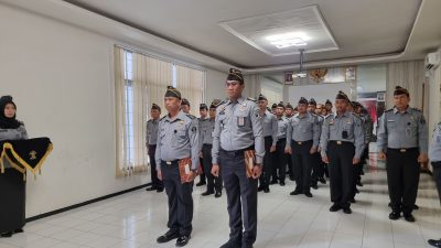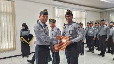 Lumajang – Bertempat di Aula Lapas Kelas IIB Lumajang Kanwil Kemenkumham Jatim Selasa pagi, Mahendra Sulaksana, Kalapas Kelas IIB Lumajang, memimpin upacara kenaikan pangkat untuk dua pegawai. Dengan dihadiri seluruh pegawai, acara ini juga merupakan momen penting dalam karier rekan-rekan mereka.