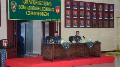 Semarang, Suluhnusantara.News | Pangdam IV/Diponegoro Mayjen TNI Widi Prasetijono memimpin pelaksanaan Sidang Pantukhir penerimaan Cata PK TNI AD Gelombang II TA 2023 tingkat Panda Kodam IV/Diponegoro di Aula Makodam IV/Diponegoro. Jumat (20/10/2023).