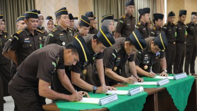 “Mari kita jadikan komitmen ini sebagai pedoman dalam setiap langkah kita serta sebagai wujud nyata dedikasi kita untuk menciptakan institusi yang bersih dan melayani,” ujarnya.
