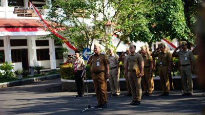 Pati-Suluhnusantara.News – Penjabat (Pj) Bupati Pati, Sujarwanto Dwiatmoko, memimpin apel perdana di Sekretariat Daerah Kabupaten Pati, Senin (26/8/2024).