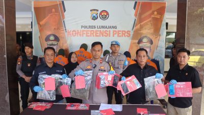 Lumajang – Satuan Reserse Narkoba (Satresnarkoba) Polres Lumajang berhasil membekuk lima orang terduga pengedar narkoba jenis sabu, ekstasi, dan ganja. Para tersangka ditangkap di lokasi yang berbeda dalam kurun waktu 10 hari. Wakapolres Lumajang Kompol I Komang Yuwandi Sastra, S.H., S.I.K, mengungkapkan identitas para tersangka yaitu AP (25) warga Kencong, Jember, N (33) warga Tlogomas, Malang, AR (40) warga Simokerto, Surabaya, IW (26) warga Kedungmoro, Kunir, dan AP (40) warga Ranubedali, Ranuyoso.