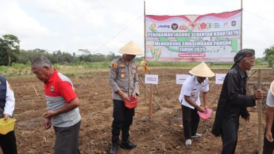 PURWOREJO~Suluhnusantarà.News | Kepolisian Resor (Polres) Purworejo menunjukkan komitmennya dalam mendukung program ketahanan pangan nasional dengan menggelar Kegiatan Tanam Raya Jagung Serentak Kuartal IV. Aksi penanaman ini dipusatkan di Desa Wonoroto, Kecamatan Purworejo, Kabupaten Purworejo, pada Rabu (08/10) pagi.