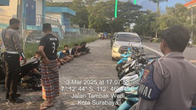 Tim gabungan yang dipimpin oleh Kasat Lantas Polres Pelabuhan Tanjung Perak, AKP Imam Saifudin Rodji, S.H. dan Kapolsek Kenjeran melakukan razia pada Senin (3/3/2025) pukul 15.00 WIB.