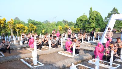 “Adapun upacara ziarah dan tabur bunga ini merupakan rangkaian kegiatan peringatan Hari Bhayangkara ke-79, selain itu juga sebagai bentuk penghormatan dan penghargaan terhadap jasa-jasa para pahlawan pejuang kemerdekaan yang telah mendahului kita,” ujarnya.