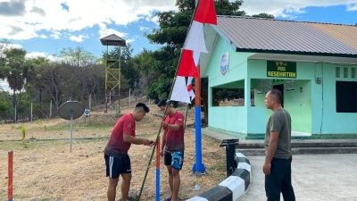 Pos Wini,Suluhnusantara.News | 7 Agustus 2025 Dalam rangka menyambut Hari Ulang Tahun ke-80 Kemerdekaan Republik Indonesia, Satgas Pamtas RI-RDTL Sektor Barat Yonarhanud 15/DBY menggelar kegiatan pelatihan Peraturan Baris Berbaris (PBB) serta distribusi Bendera Merah Putih di wilayah Pos Wini, Kecamatan Insana Utara, Kabupaten Timor Tengah Utara.