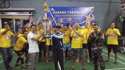 Bogor Timur~SN.News | Setelah sebulan penuh berlangsung, ajang Bulutangkis Karang Taruna Cup dalam rangka Bulan Bakti Karang Taruna antar RW Desa Pasirangin resmi berakhir dengan sukses. Kegiatan ini diikuti oleh 13 RW yang ada di wilayah Desa Pasirangin, Kecamatan Cileungsi, Kabupaten Bogor.