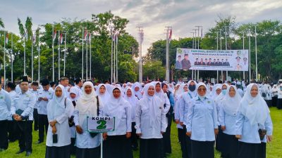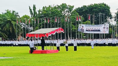 BANYUWANGI~SN.News | Upacara Hari Amal Bakti (HAB) ke-79 Kementerian Agama Republik Indonesia berlangsung khidmat pada Jumat, 3 Januari 2025 pagi, di Taman Blambangan, Banyuwangi. Acara ini dihadiri oleh pelajar madrasah, Aparatur Sipil Negara (ASN) Kementerian Agama se-Kabupaten Banyuwangi, dan tokoh agama serta tokoh masyarakat setempat. *Pesan Kebangsaan dan Religiusitas* Wakil Bupati Banyuwangi, Sugirah, bertindak sebagai pembina apel dan menyampaikan amanat tertulis Menteri Agama RI, Nasaruddin Umar.