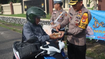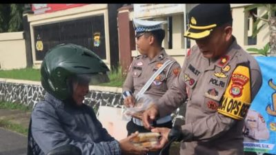 Way Kanan-SN.News – Polres Way Kanan membagikan takjil kepada masyarakat yang sedang melaksanakan ibadah puasa di bulan suci Ramadhan 1446 H yang berlangsung di depan Mako Polres setempat, pada Rabu sore (05/03/2025).