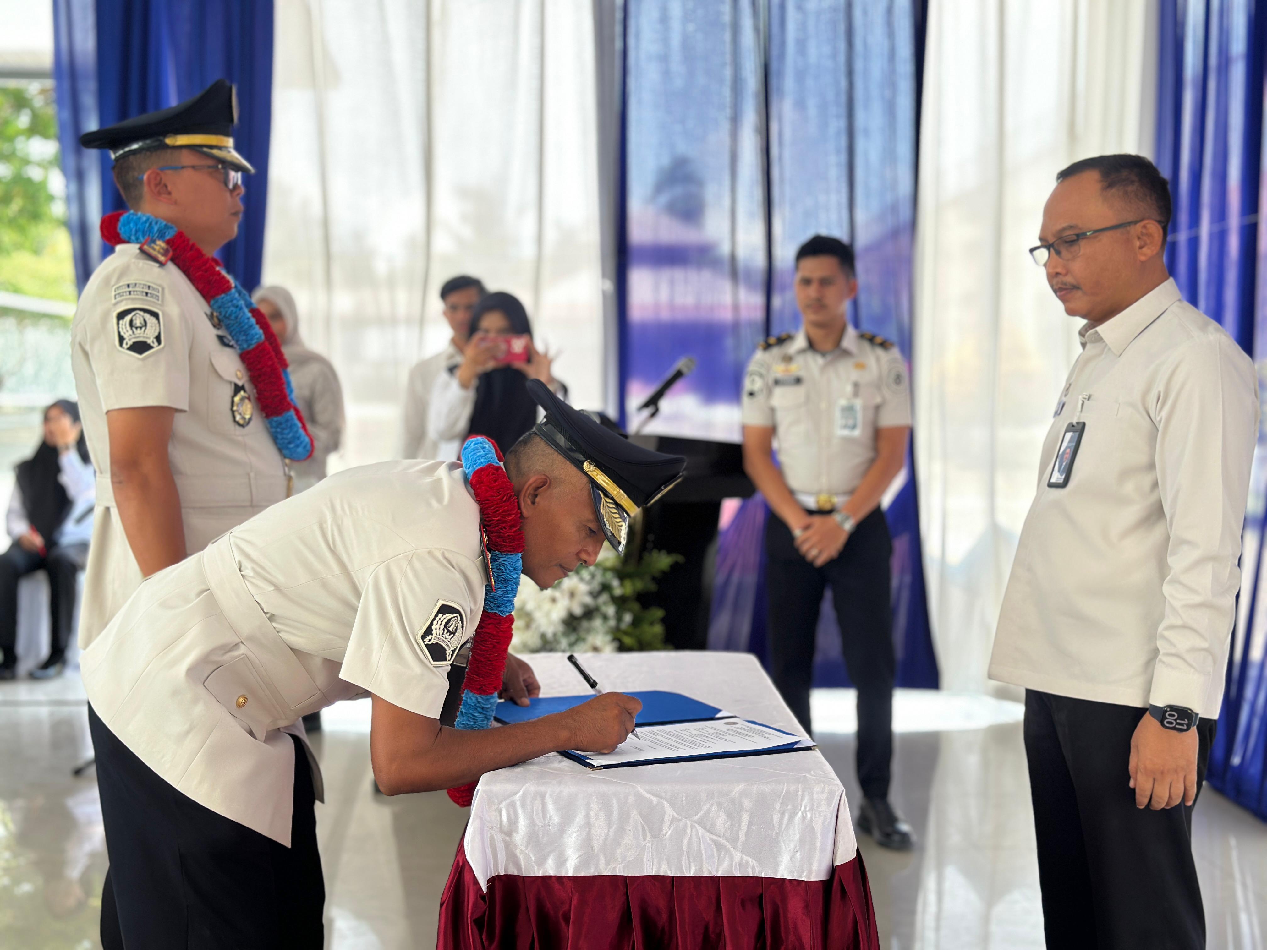 Acara serah terima jabatan (Sertijab) dan pisah sambut ini disaksikan langsung oleh Kepala Kantor Wilayah Ditjenpas Aceh, Yan Rusmanto. Turut hadir dalam kegiatan tersebut jajaran Pejabat Administrator, unsur Forkopimda, serta sejumlah tamu undangan lainnya.