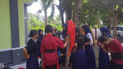 halaman sekolah guna mempersiapkan diri untuk mengikuti festival Gandrung Sewu yang akan di selenggarakan oleh pemerintah Kabupaten Banyuwangi 26 Oktober 2024 mendatang bertempat di pantai Boom, Banyuwangi, Jawa Timur.