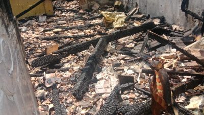 “Tidak disangka, Pak Suto baru saja keluar untuk jemput istrinya di rumah sakit, sekitar 15 menit kemudian kami melihat rumahnya terbakar. Beruntung pemadam kebakaran (Damkar) cepat datang, entah apa yang terjadi,” ujar seorang warga.