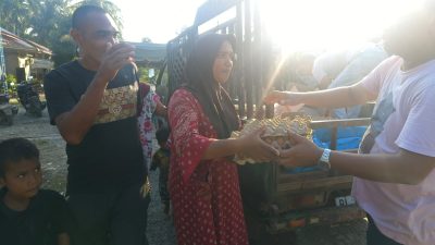 “Sudah di Meunasah ya,” teriak Bang Wan dalam bahasa Aceh dari mobil pikap yang membawa bantuan.