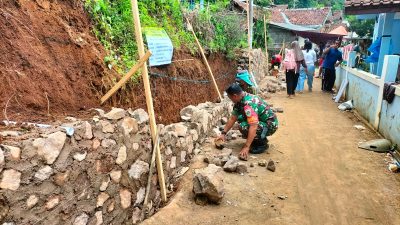 SUKABUMI – Suluhnusantara. News, Pembangunan infrastruktur desa kembali digenjot. Pada Jumat (28/11/2025), Babinsa Desa Balekambang Serma Soepriyono dari Koramil 0607-10/Nagrak turun langsung melakukan monitoring sekaligus ikut bergotong-royong dalam pembangunan Tembok Penahan Tanah (TPT) di Kampung Leuwi Peti RT 04/04, Desa Balekambang, Kecamatan Nagrak, Kabupaten Sukabumi.
