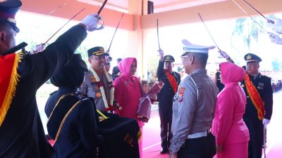 Kedatangan AKBP Rachmad bersama Ketua Bhayangkari Cabang Pekalongan disambut hangat oleh Wakapolres Pekalongan Kompol Muhammad Nurkholis, S.H., yang mengalungkan bunga di pintu gerbang Mapolres. Prosesi dilanjutkan dengan tradisi Pedang Pora yang khidmat, di mana jajaran perwira berbaris rapi membentuk gerbang kehormatan, mengiringi langkah sang Kapolres baru dengan penuh penghormatan.