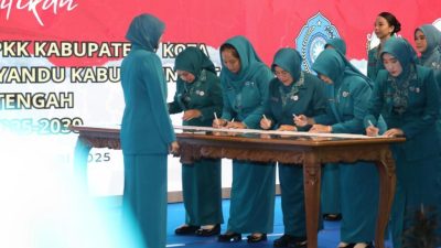 Dalam kesempatan itu, Nawal Arafah Yasin selaku Ketua TP PKK Provinsi Jawa Tengah melantik langsung Ketua TP PKK Kabupaten/Kota se-Jawa Tengah berdasarkan SK Ketua Tim Penggerak PKK Provinsi Jawa Tengah Nomor 04/KEP/PKK.PROV/II/2025 tanggal 24 Februari 2025.